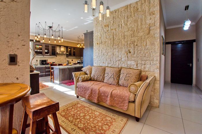 Entertainer's family haven with indoor and outdoor BBQs and a self-contained one-bedroom flat, set on a generous 867m² erf in a quiet, family-friendly neighborhood; three bedrooms, two baths, three garages.
