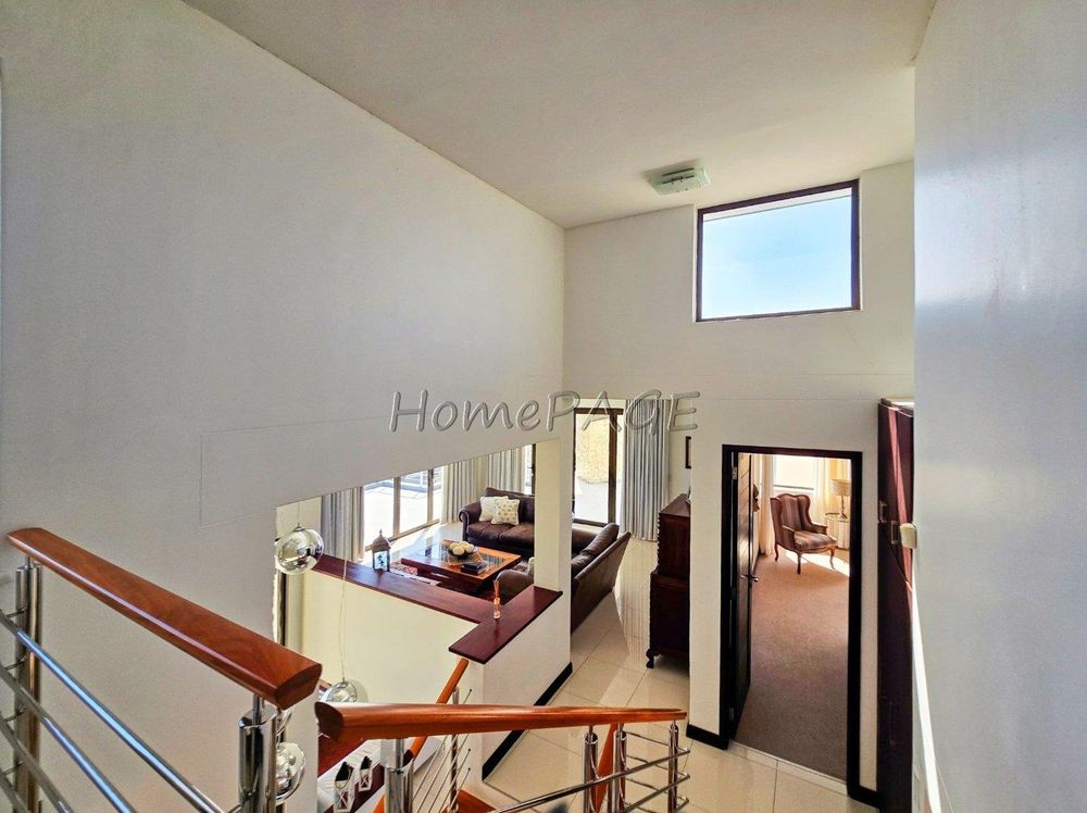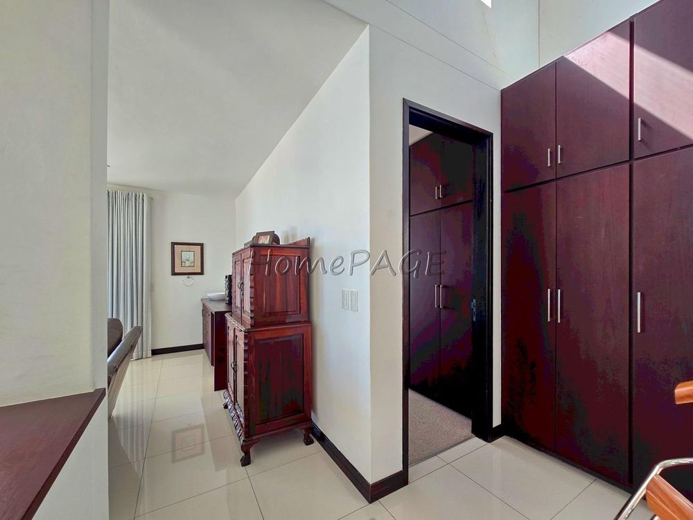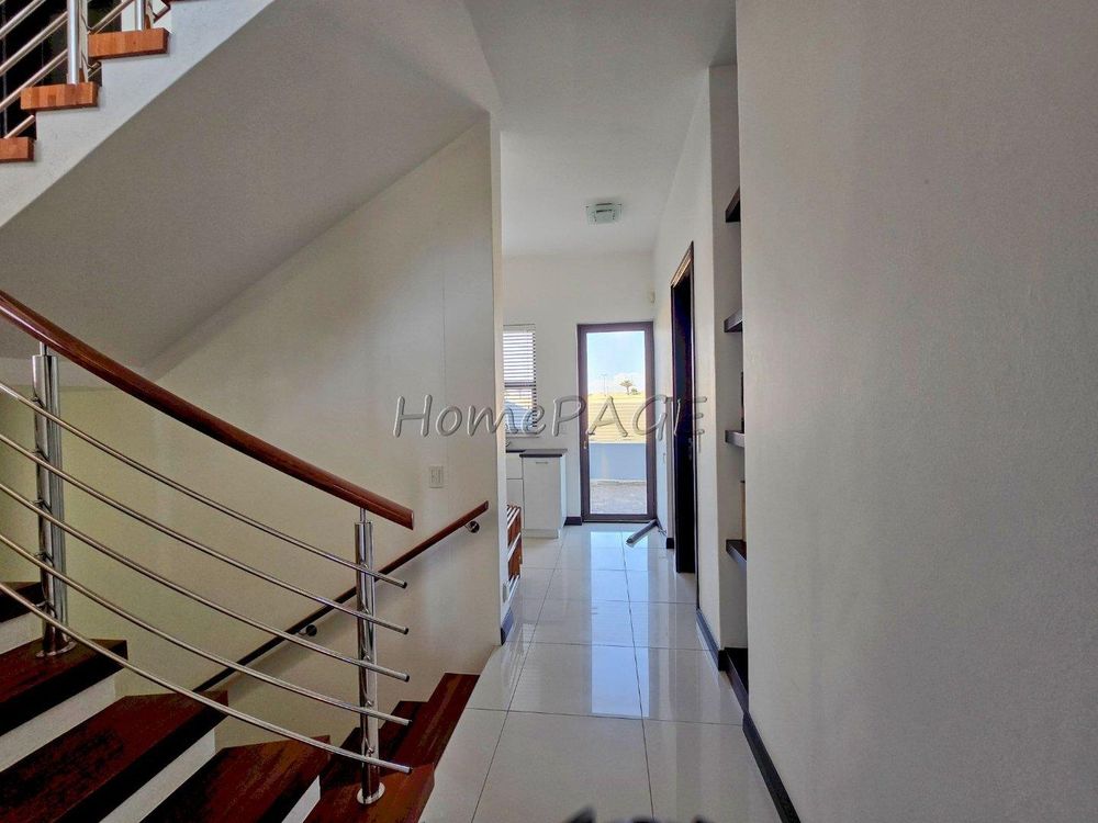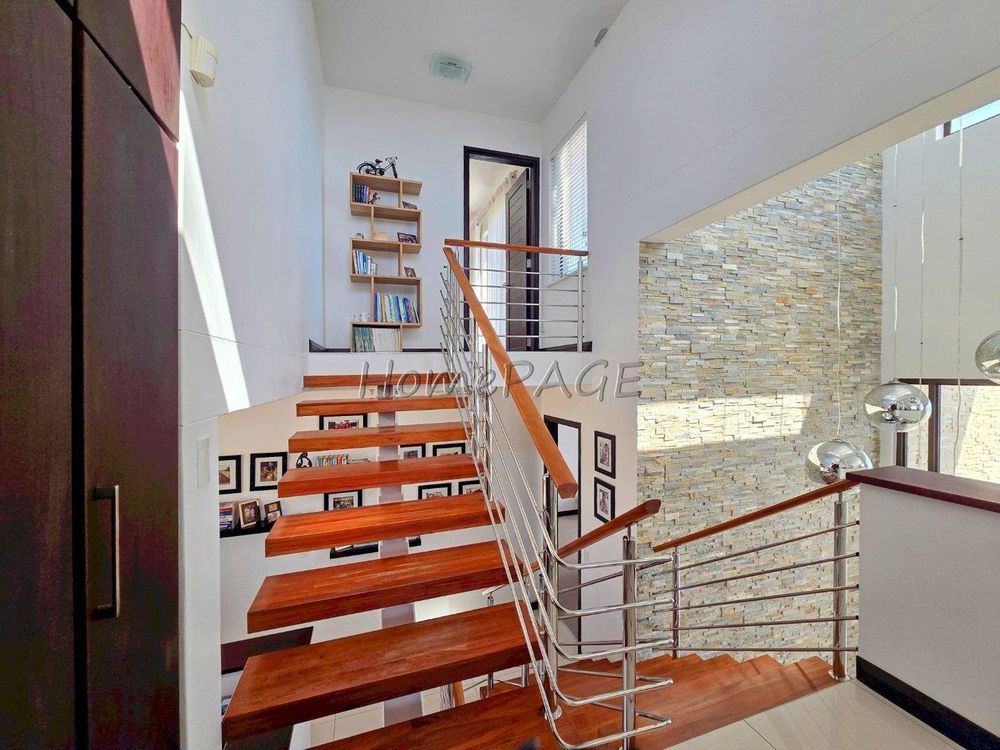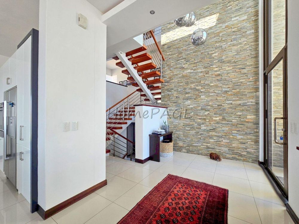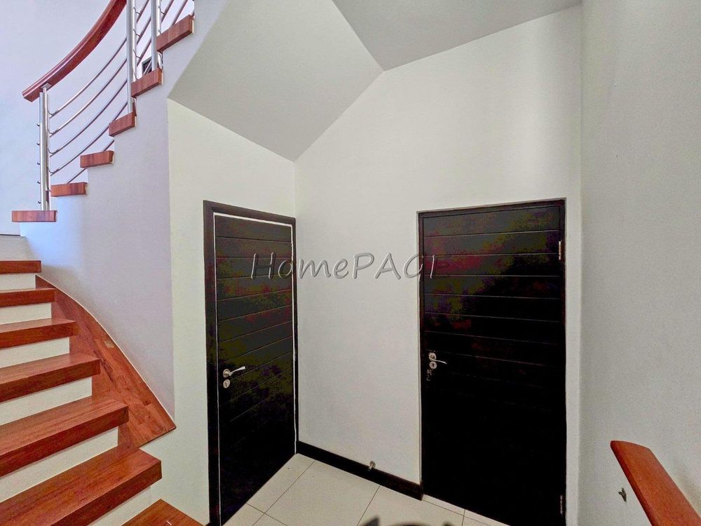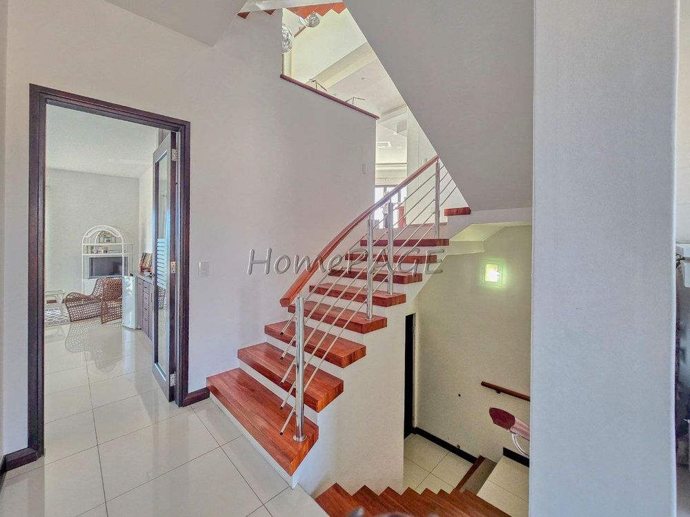 The home is on an elevated plot, thus was home designed on multiple levels. Our images are in sequence from the living area, upstairs to the 3 bedrooms, and again from the living area to the guest suite, laundry room and garage