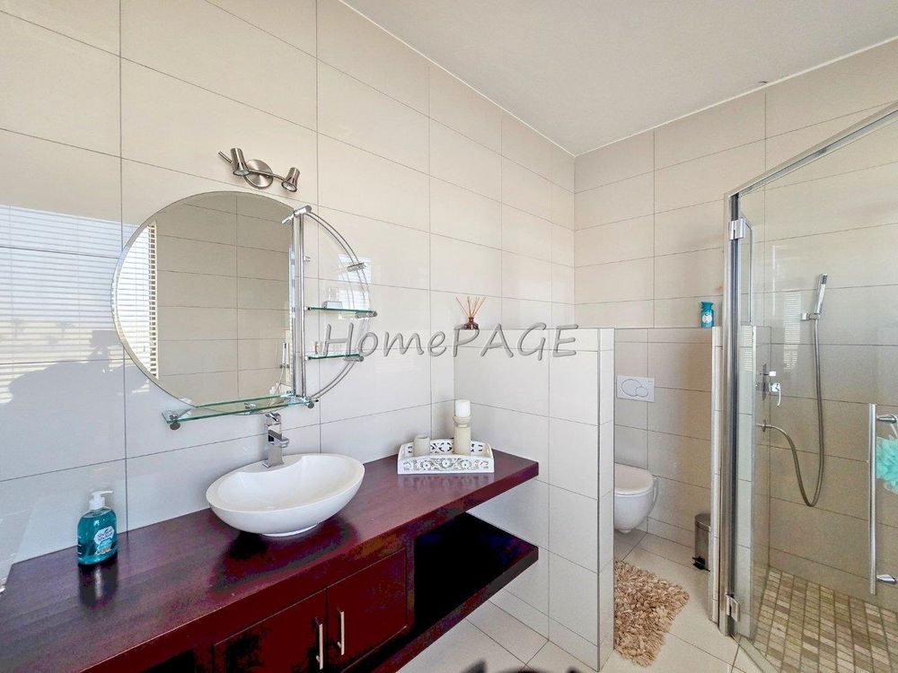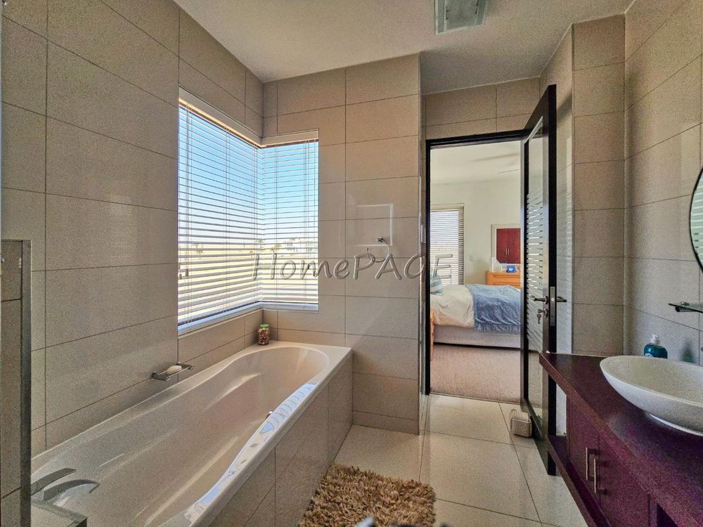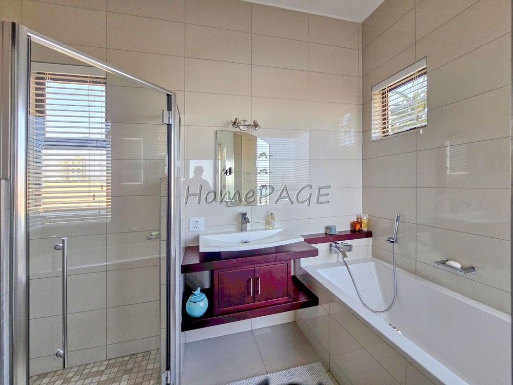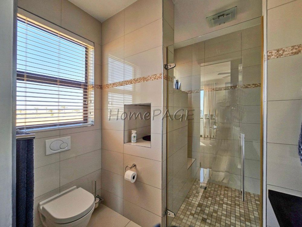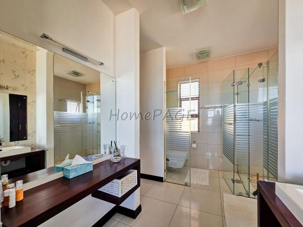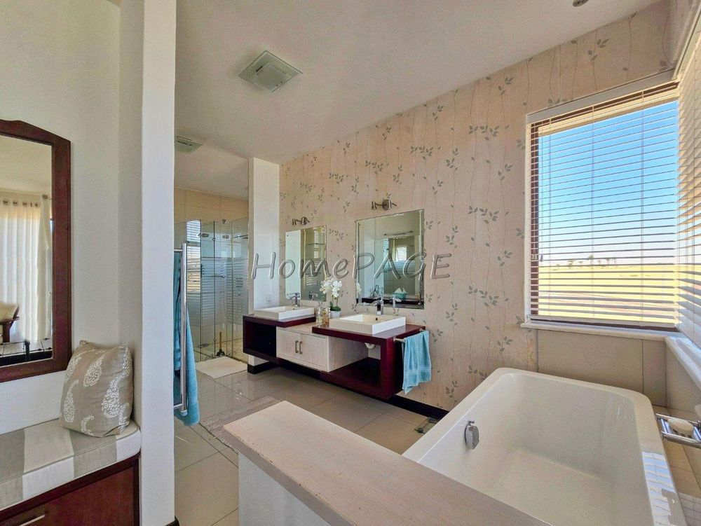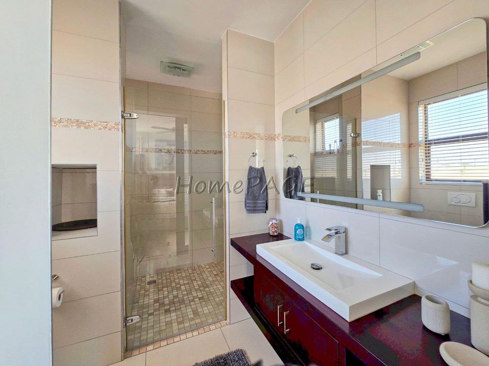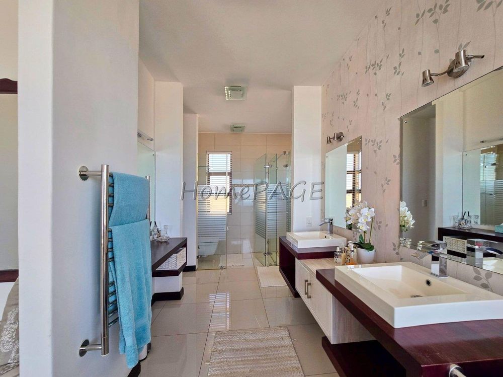 * Bedroom is semi-open plan with luxurious bathroom: Double basins, double shower, bath and toilet