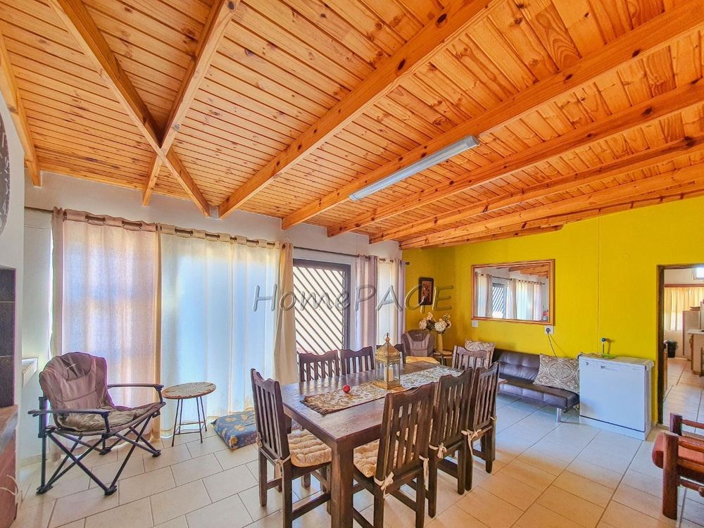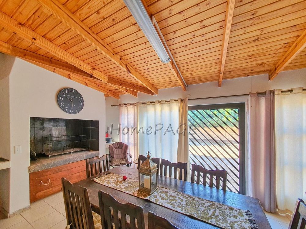 Large Braai room/entertainment room with separate outside entrance as well as entrance into kitchen.