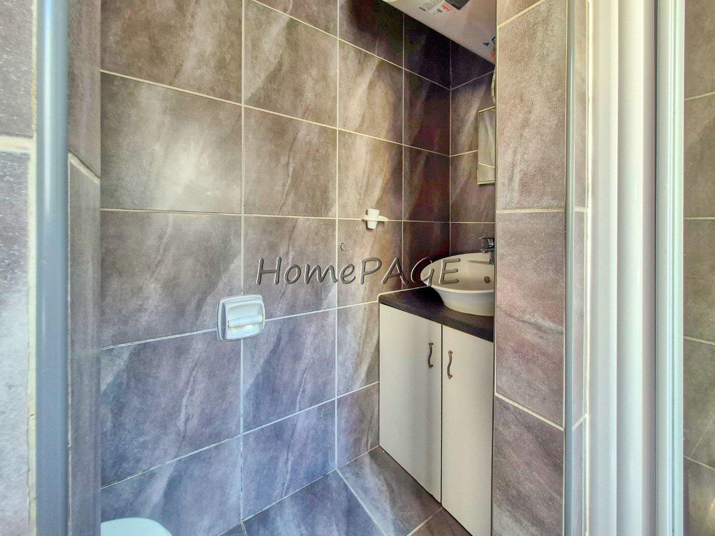 * Bathroom with shower, basin, toilet