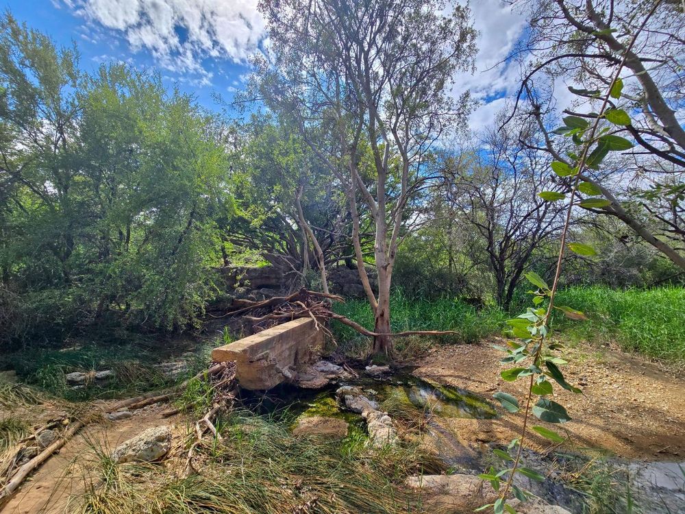One water source with continuous gravity flow. The size is not known. Water level stay stagnant