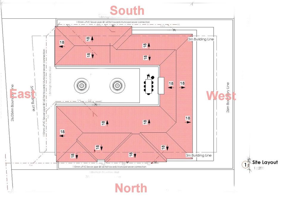 * U-Shape, with large wind protected courtyard garden, accessible from all bedrooms and living areas of main home