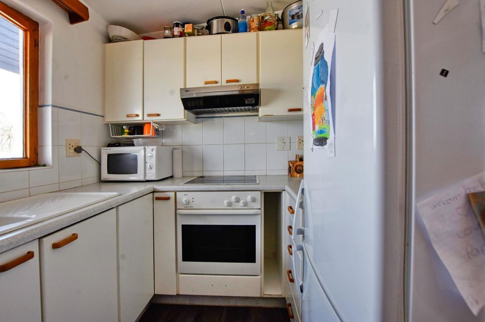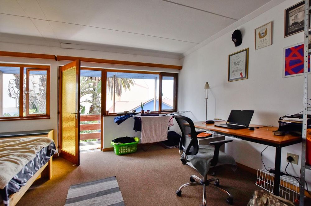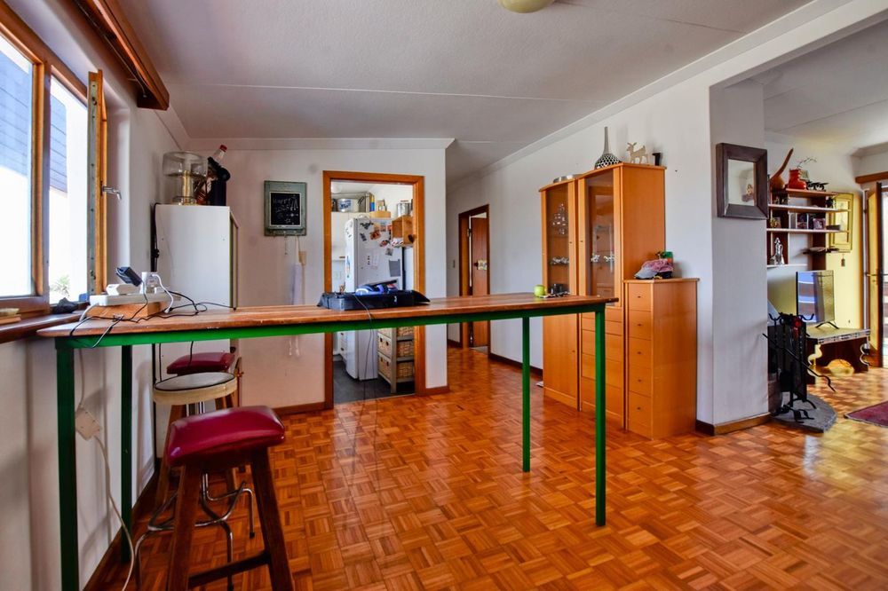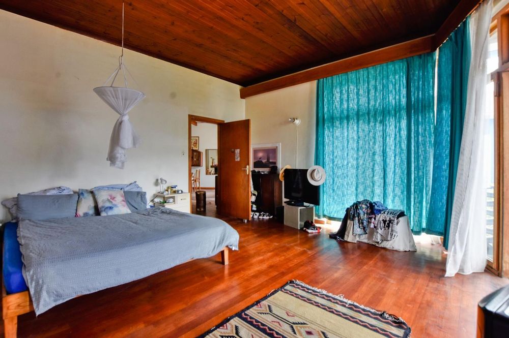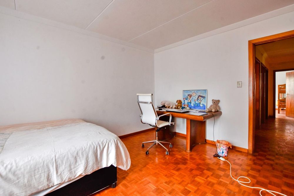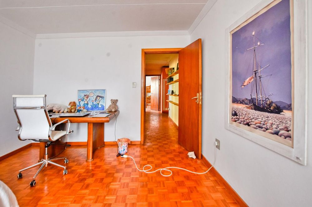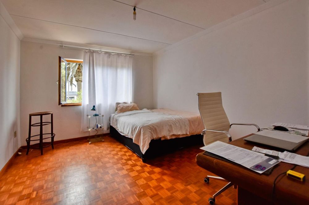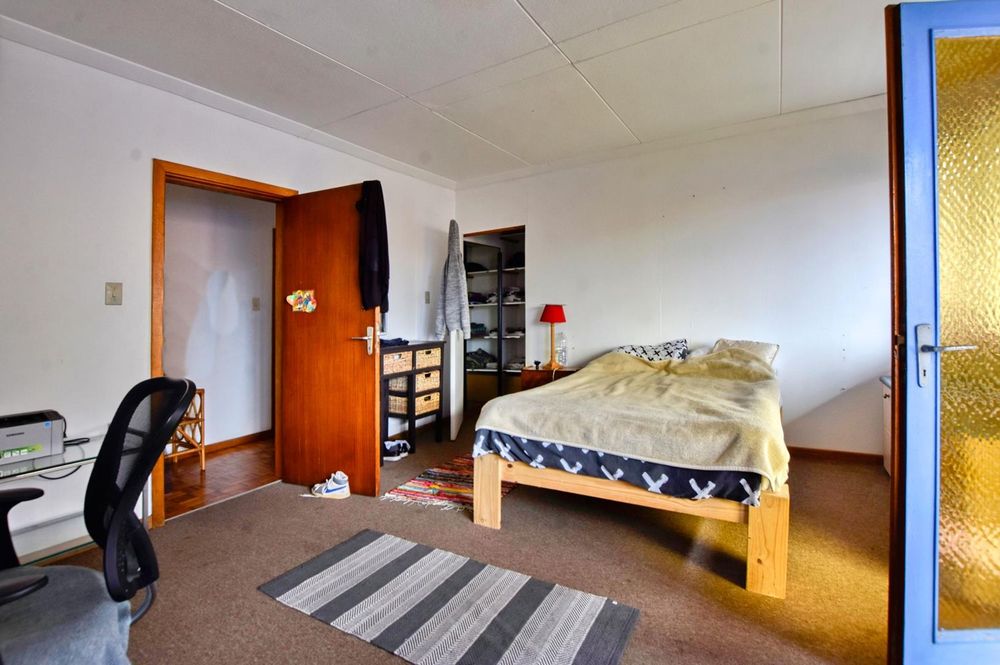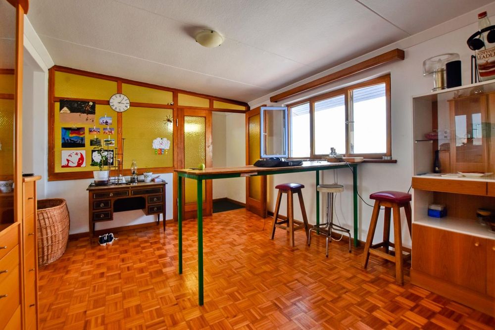 The ground floor comprises of: Entrance, lounge with fireplace, covered stoep, kitchen with built-in cupboards and fitted appliances, pantry, laundry, passage with linen cupboards, three bedrooms without any built-in cupboards, bathroom with bath and hand washbasin, separate shower, and hand washbasin, as well as separate WC and hand washbasin. Furthermore, there is bachelor type cottage comprising: living area and bedroom, kitchenette, bathroom with bath, WC, and hand washbasin.
