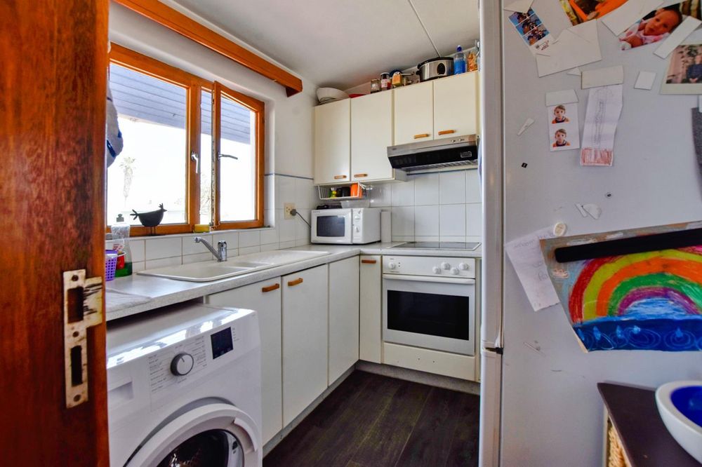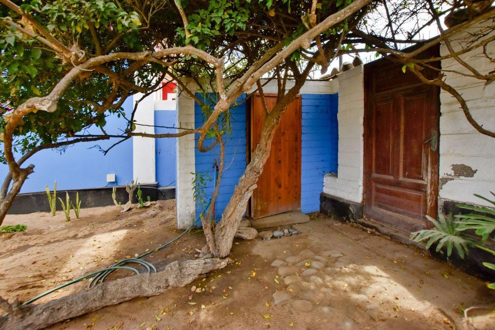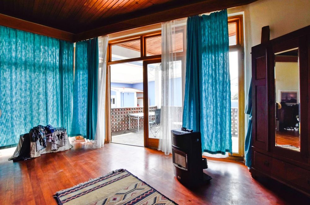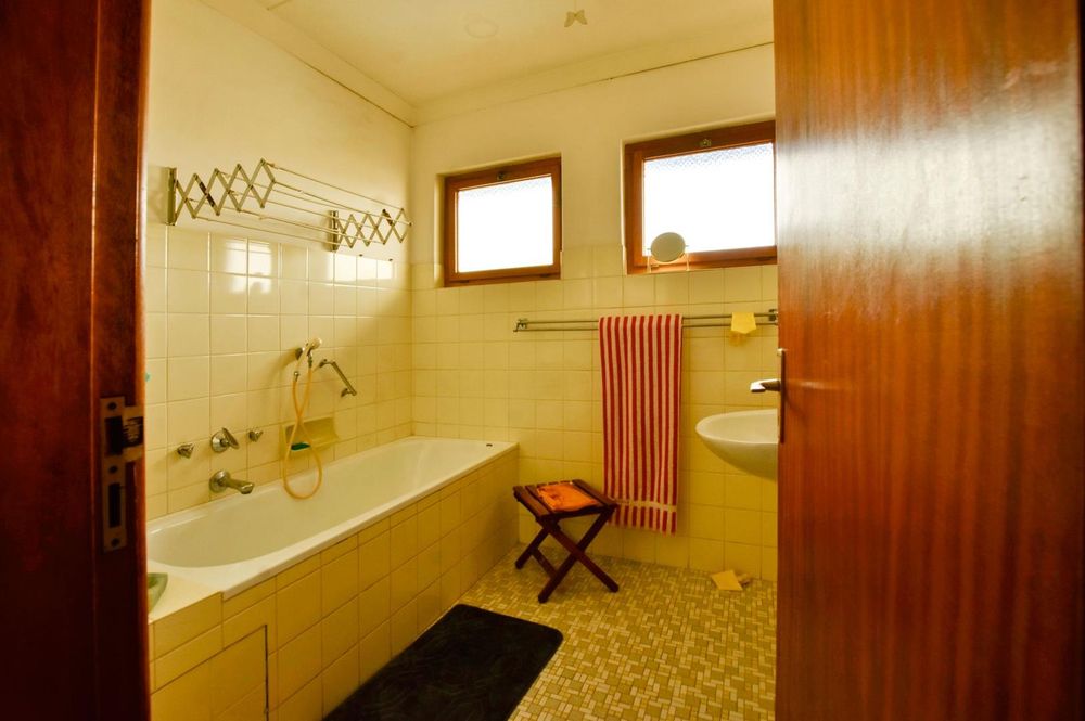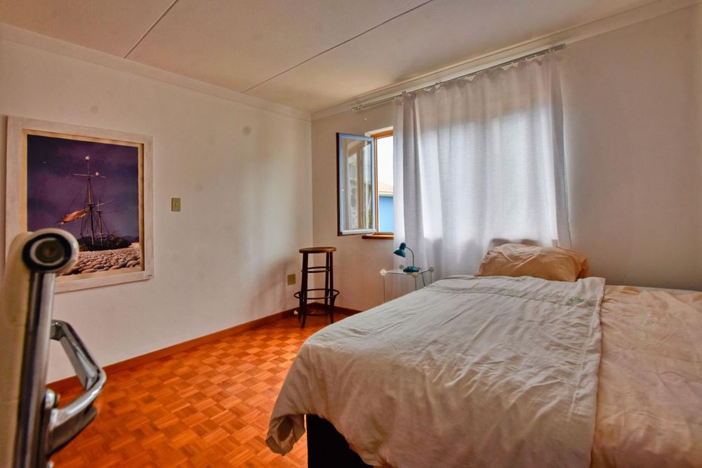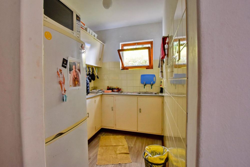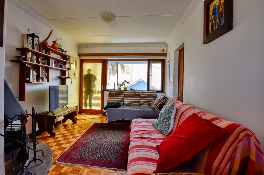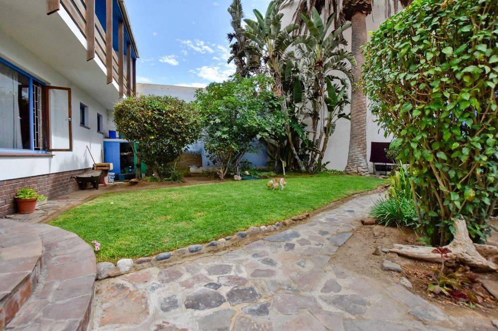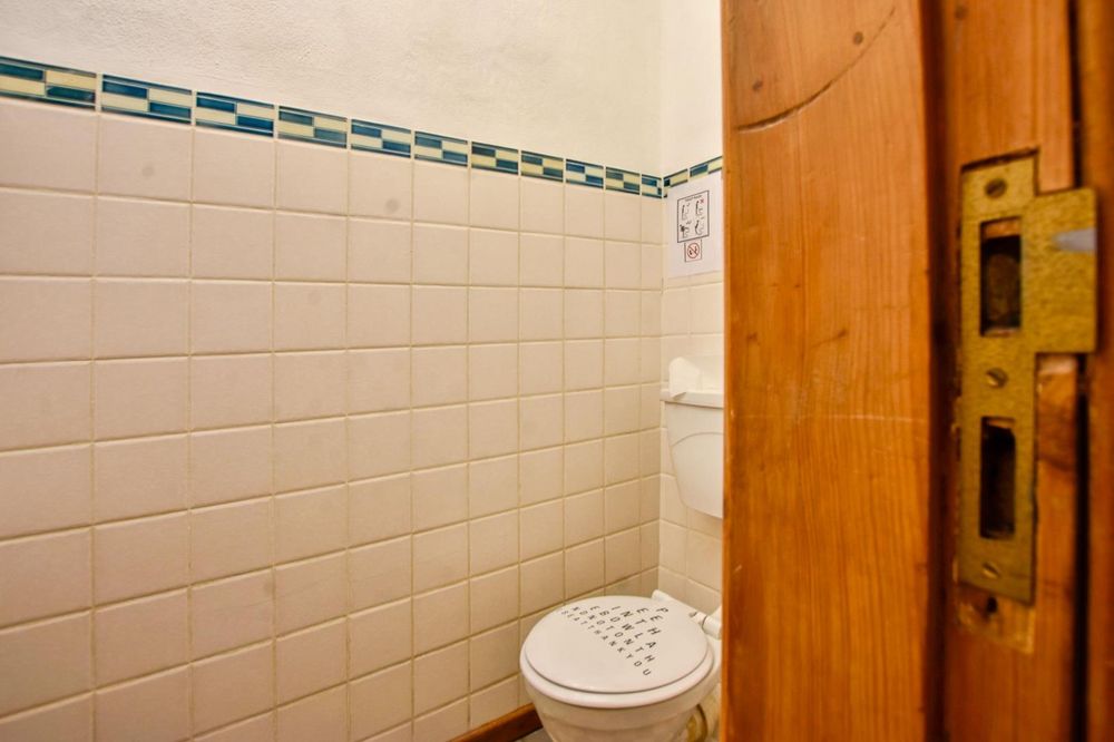 The ground floor comprises of: Entrance, lounge with fireplace, covered stoep, kitchen with built-in cupboards and fitted appliances, pantry, laundry, passage with linen cupboards, three bedrooms without any built-in cupboards, bathroom with bath and hand washbasin, separate shower, and hand washbasin, as well as separate WC and hand washbasin. Furthermore, there is bachelor type cottage comprising: living area and bedroom, kitchenette, bathroom with bath, WC, and hand washbasin.