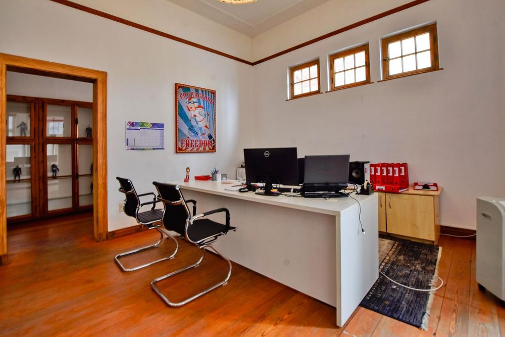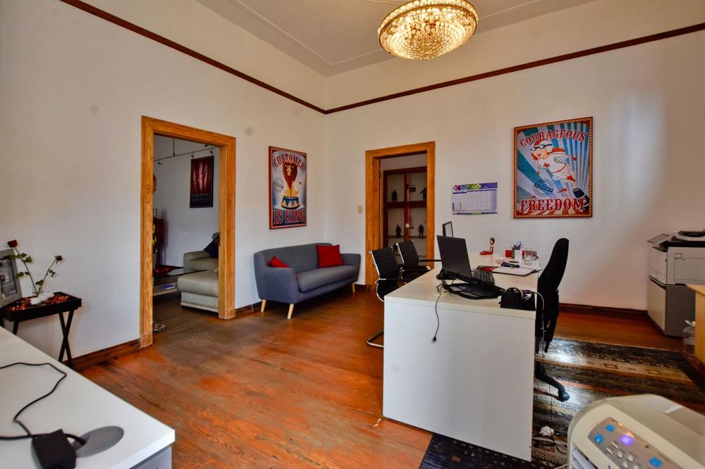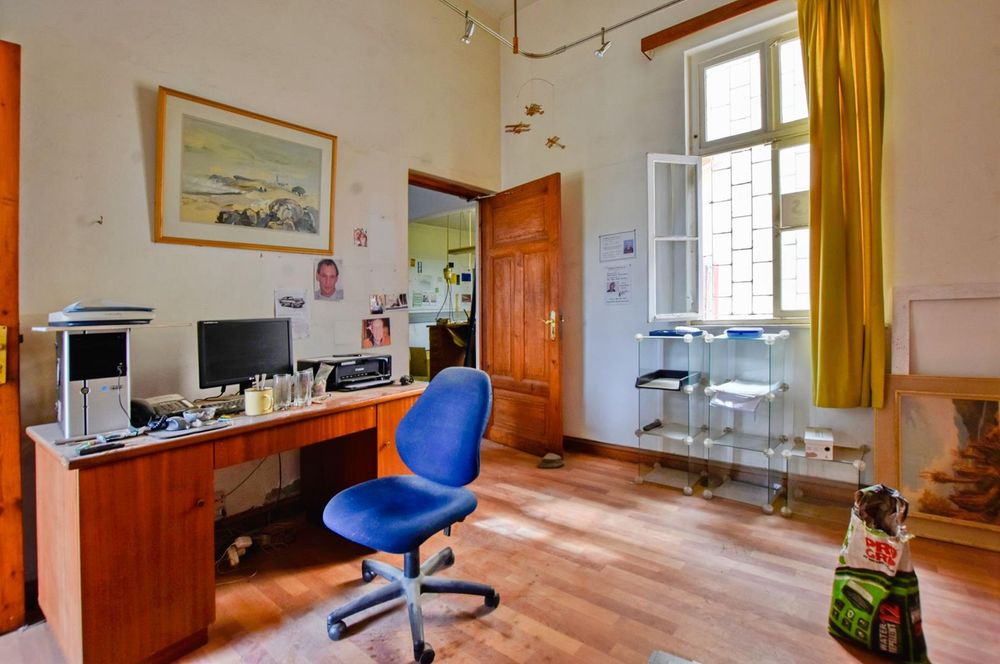 The building comprises : covered entrance stoep, various offices, which could be utilises as studios, offices, strong room, storage facility, workshop areas and polishing room. Situated at the rear of the main building is a self-contained cottage, comprising bedroom, kitchen, passage, and bathroom.