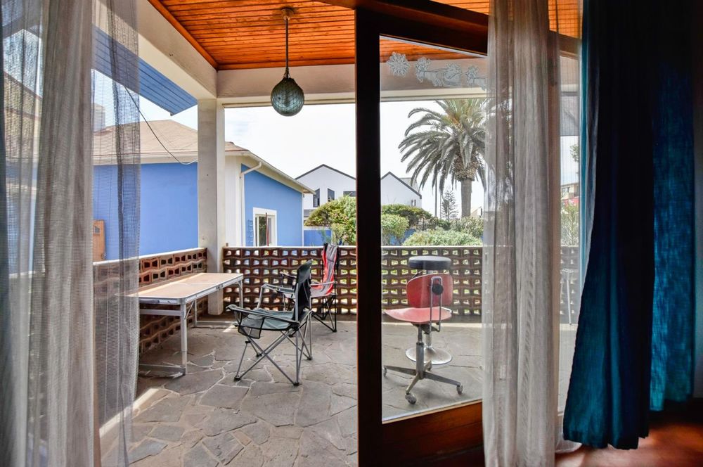 This balcony is situated to the first floor of the rear building, comprising an intermediate reinforced slab.