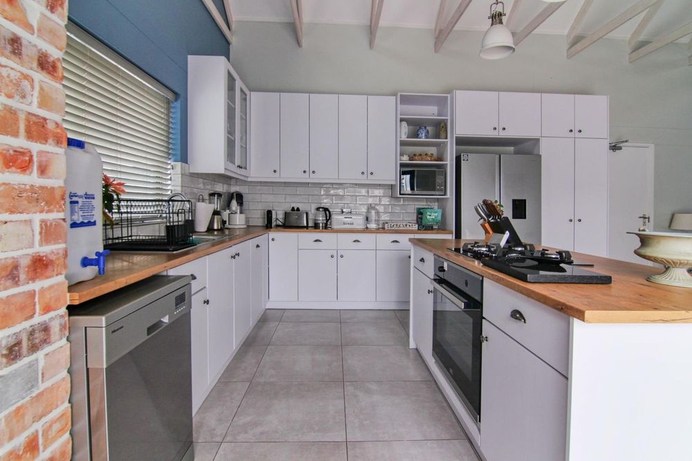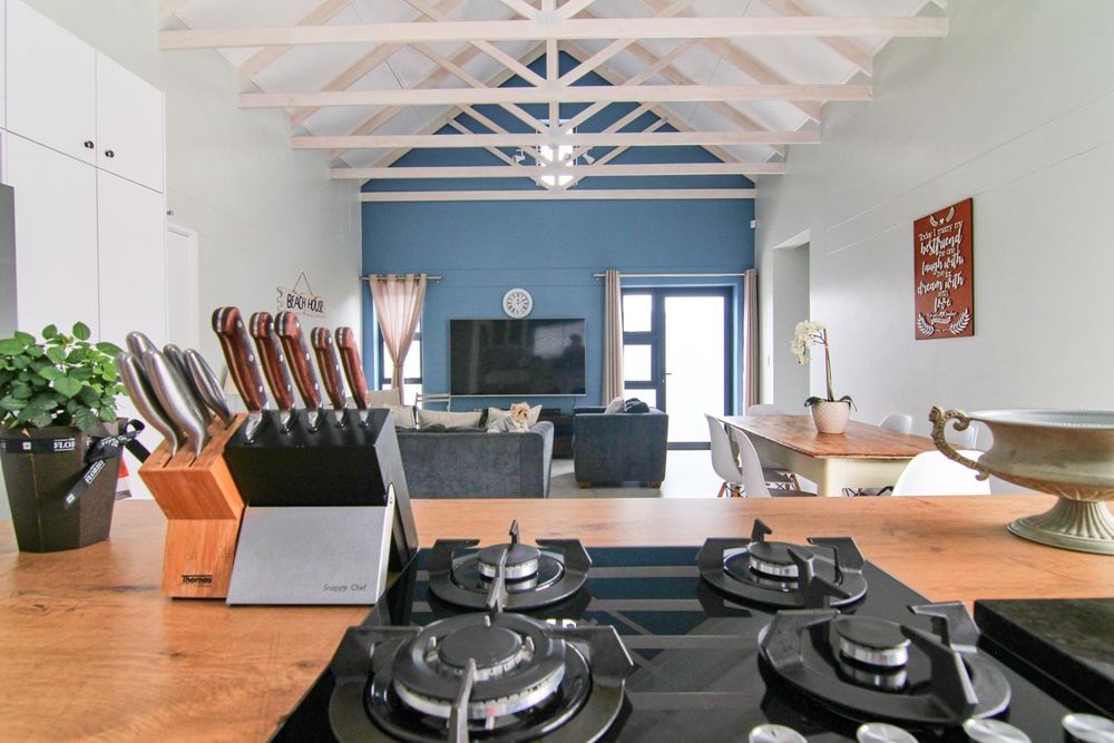 * Kitchen, with island and gas hob, open plan with living area