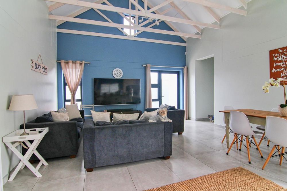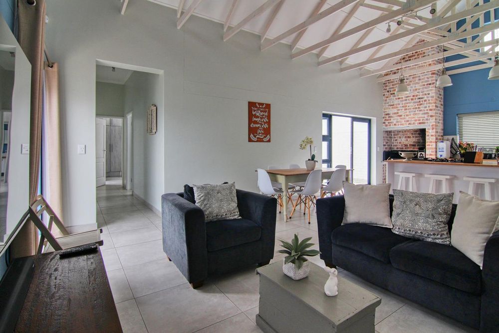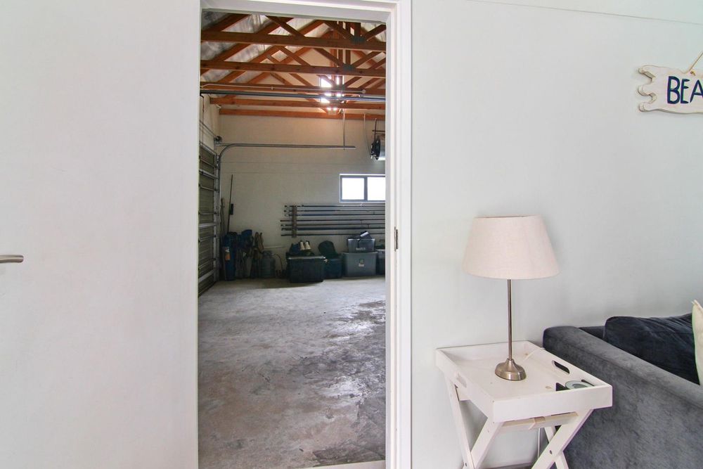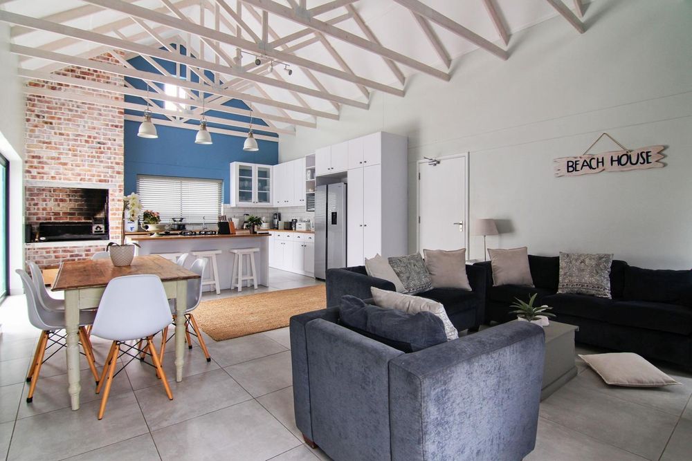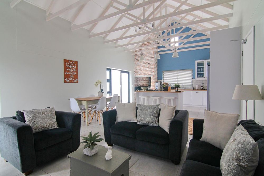 * Living area with wood trusses, catering for lounge/dining room, with indoor BBQ